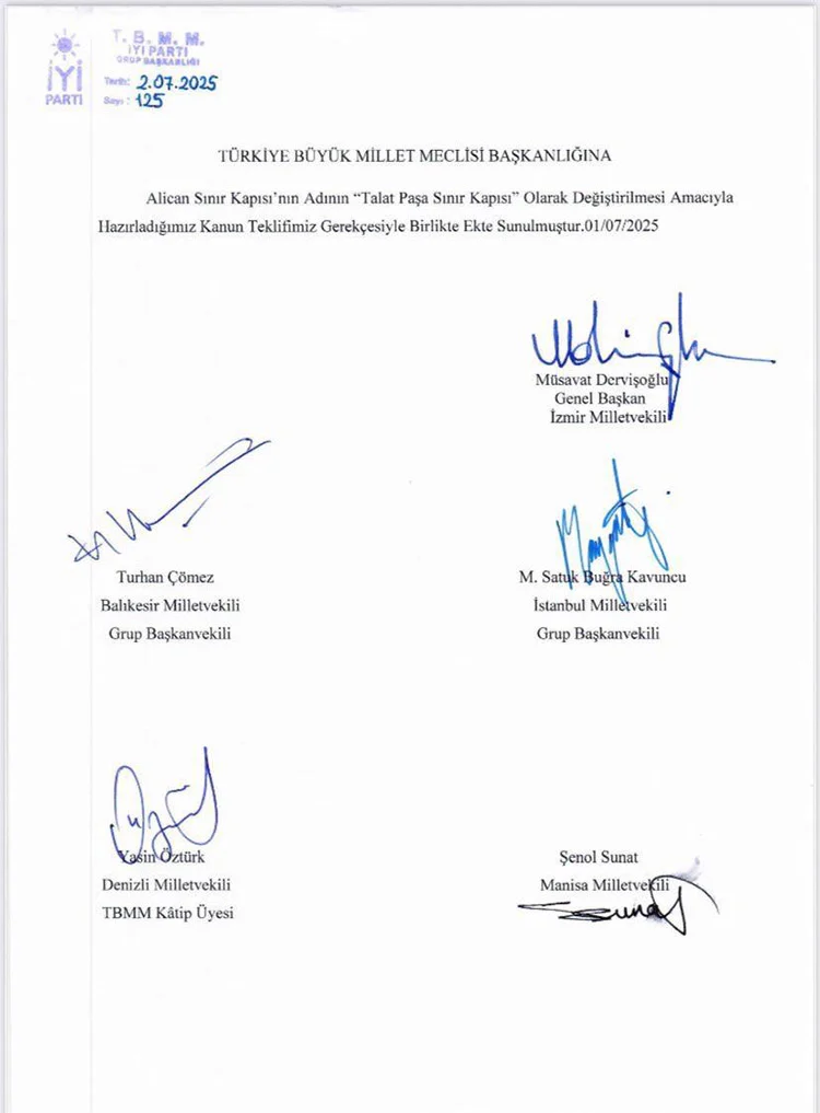 Թուրքիայի խորհրդարանի «Լավ» (İYİ) կուսակցությունը առաջարկ է ներկայացրել Թուրքիայի Ազգային մեծ ժողովին՝ Թուրքիա-Հայաստան սահմանին գտնվող Ալիջան սահմանային անցակետը «Թալեաթ փաշա սահմանային անցակետ» վերանվանելու մասին։