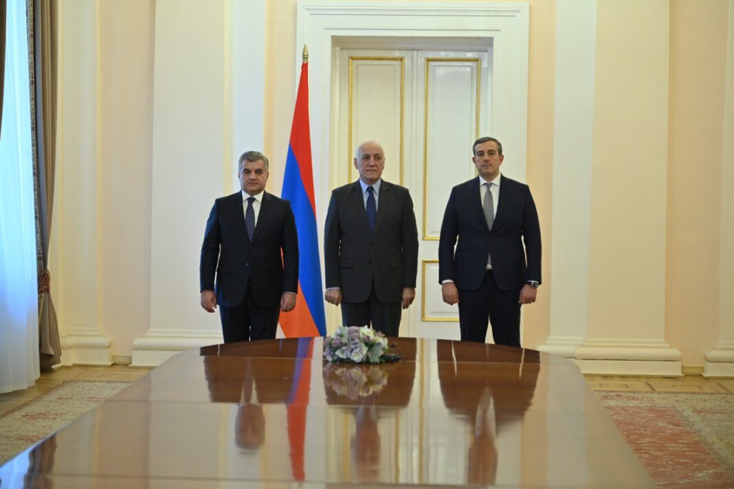 Հայաստանի Հանրապետության նախագահ Վահագն Խաչատուրյանի և Բարձրագույն դատական խորհրդի նախագահ Արթուր Աթաբեկյանի մասնակցությամբ նախագահական նստավայրում տեղի է ունեցել Արմավիրի մարզի առաջին ատյանի ընդհանուր իրավասության դատարանի դատավոր Նշան Խաչատրյանի երդման արարողությունը:
